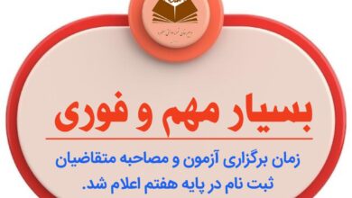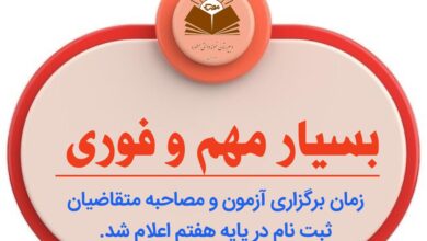 با سلام و احترام به اطلاع می رساند روز چهارشنبه مورخ ۲۵ تیرماه آخرین زمان جهت برگزاری آزمون و مصاحبه…